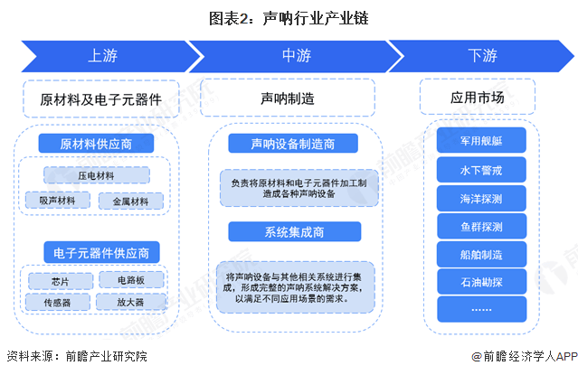 声呐行业产业链涵盖了从上游原材料供应、制造,到中游声呐系统研发、生产与集成等制造环节,再到下游应用的完整环节。上游主要包括电子元件、传感器、特种材料等供应商,这些原材料和零部件的质量直接影响声呐系统的性能。中游企业负责声呐系统的设计、研发与生产,涉及复杂的信号处理、声学设计和系统集成技术,即声呐制造。下游应用广泛,涵盖军事领域的反潜、水雷战,以及民用的海洋资源勘探、渔业捕捞、水下工程检测等。随着海洋经济的发展和军事需求的增加,声呐行业产业链不断延伸和深化,技术创新和市场需求推动了产业链各环节的协同发展,形成了从基础材料到高端应用的完整产业生态。
