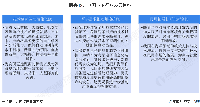 中国声呐行业正迎来快速发展,呈现三大趋势。技术上,借助人工智能等前沿技术,声呐加速智能化,实现自主学习与精准探测,并向低频、大功率、大基阵方向发展,以满足远距离与深海探测需求;军事领域,全球海洋安全形势紧张,我国海军现代化建设持续推进,舰船建造列装带来大量声呐初次装配需求,“耗材”替换需求也逐步增加,电子信息化趋势下声呐技术升级迫切,推动市场规模扩张;民用方面,声呐在海洋资源勘探、水下工程建设、环境保护、渔业等领域应用前景广阔,随着海洋开发与保护重视程度加深,叠加政策支持,民用市场需求将不断释放,开辟全新发展空间。