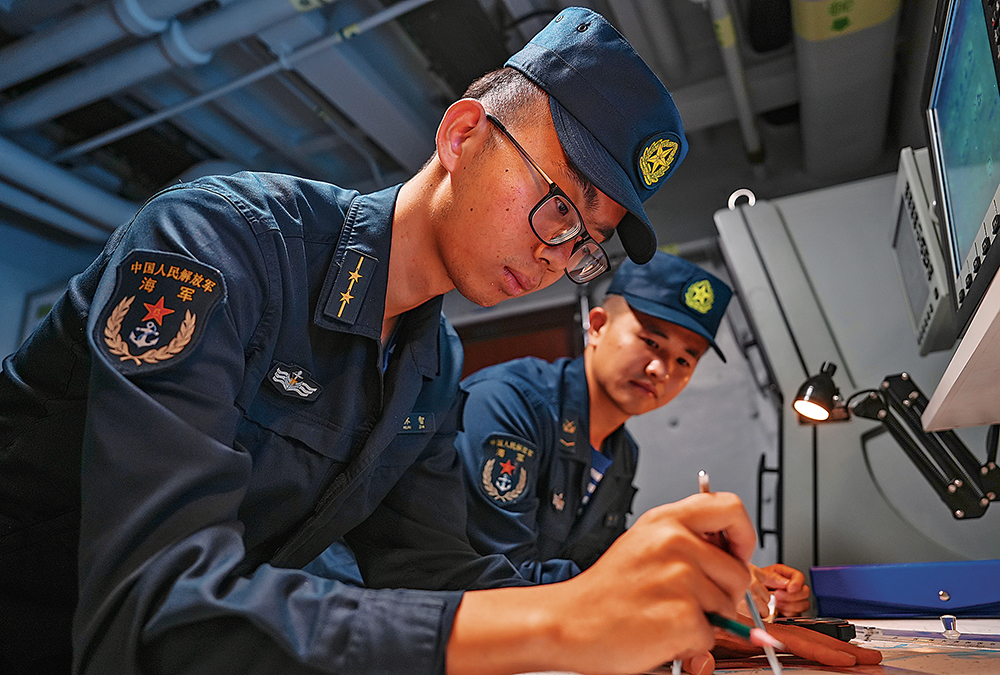 茫茫大洋上,遵义舰官兵从不觉身处“一叶孤舟”——信息化战场早已打破空间壁垒,让每个人都清晰感知着自己在联合作战体系中的坐标。